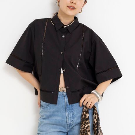・シンプルなショートシャツにはしごレースで切替た上品なブラウス