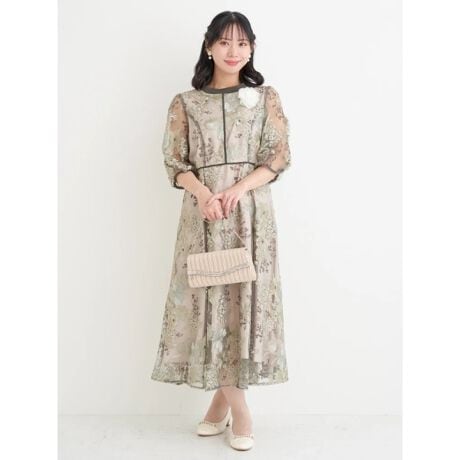・大人っぽい配色の刺繍が装いも華やかな印象に。