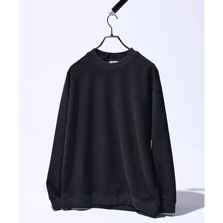 リブ編みのような縦目でニット見えするスウェット。