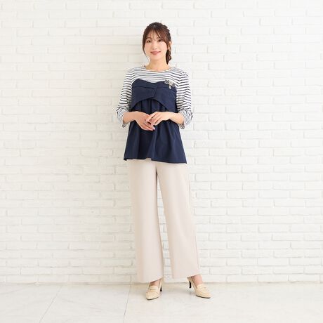 ・ワイドベルトがおなか周りに優しくフィットするワイドパンツ