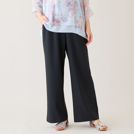 ・ワイドベルトがおなか周りに優しくフィットするワイドパンツ