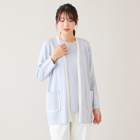 ・襟から前端、ポケットまわりに配色を施し、シンプルな中にも上品なアクセントをプラス