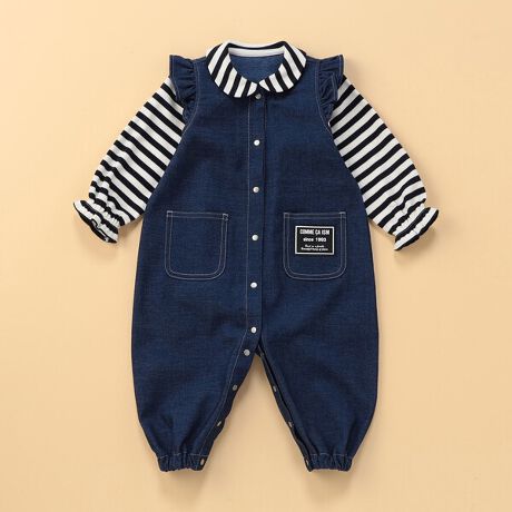 ボーダーのインナーを重ね着しているように見えるレイヤード風デザインで、
