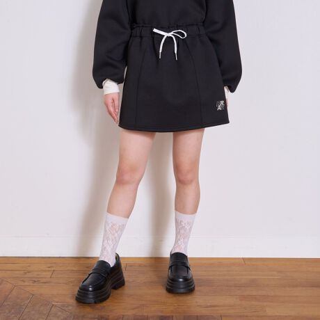 ストライプ柄のドローコードをあしらったスポーティーな雰囲気のミニスカートです。