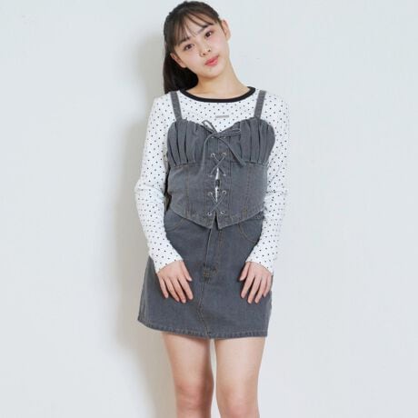 お姉さんっぽい雰囲気のデニムビスチェとスカートのセットアップです。