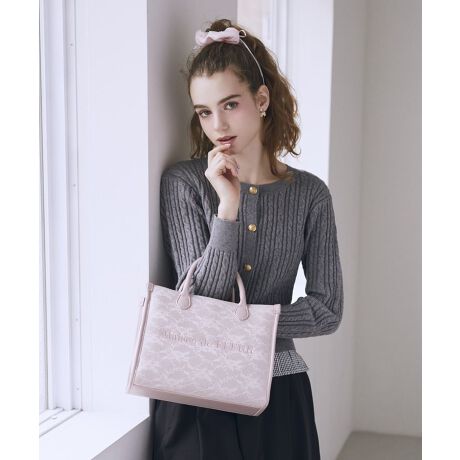 上品なレース素材とレザー調素材を組み合わせ、高級感たっぷりに仕上げた2WAYトートバッグ。