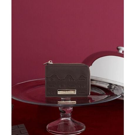 レザー調素材にFLEURのロゴやリボン・ローズを取り入れた、オリジナルのチョコレート柄を型押しで表現したフラグメントケース。