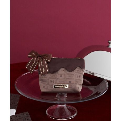 FLEURのロゴやリボン・ローズを取り入れた、オリジナルのチョコレート柄を使用したポーチ。