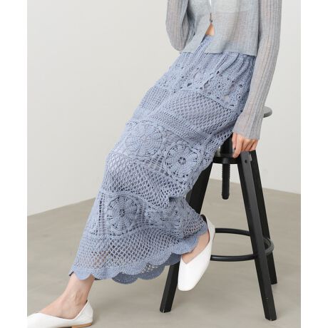 繊細な編み柄が目を惹く、クロシェIラインスカート。縦にすっきりと落ちるシルエットで、甘さのある素材感を大人っぽく引き締めてくれる一枚です。パネルのように切り替えられた編みデザインが立体感を生み、シンプルなトップスと合わせるだけでコーディネートが華やかに。裏地はしっかりと長さがあり、安心感のある着用感。足元にほんのり透け感を残すことで、抜け感のある軽やかな印象に仕上げています。エクリュは柔らかくナチュラルに、ブルーは爽やかで春らしく、ブラックはシックで大人な雰囲気に。