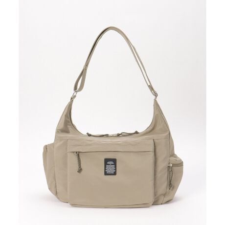 軽量で扱いやすい撥水素材を使用した、横長フォルムのビッグショルダーバッグ。