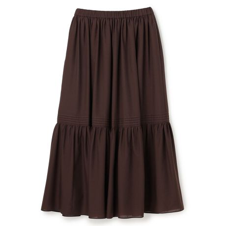 ■デザイン軽やかに揺れるシルエットが魅力のギャザーロングスカート。ティアードの切り替え部分に繊細なピンタックを施し、立体感と上品な表情をプラスしました。ふんわりと落ち感のある素材感で、ニットやブルゾンとの相性も抜群です。ブーツやパンプスはもちろん、スニーカーを合わせればカジュアルな着こなしもお楽しみいただけます。綿素材に比べて、お手入れが楽ちんなのも嬉しいポイントです。※ポケット付き
