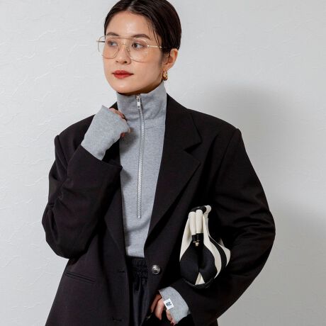 ・首元のハーフジップは、開閉によって印象を調整できるデザイン