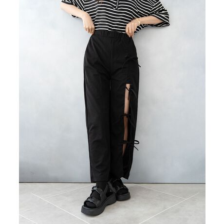 リボン開き見せハイウエストパンツ