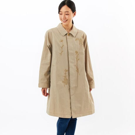 ツイル/デニムスレッド フローラルライン刺繍単色刺繍コート