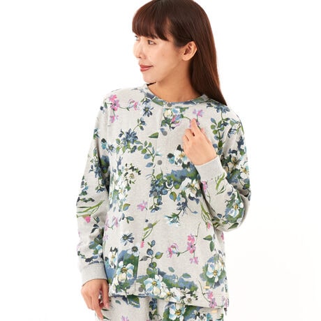 フロラフロートプリント裏毛ドットボタンカーディガン