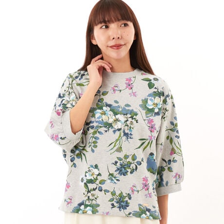 フロラフロートプリント裏毛ドットドルマンスリーブスウェット