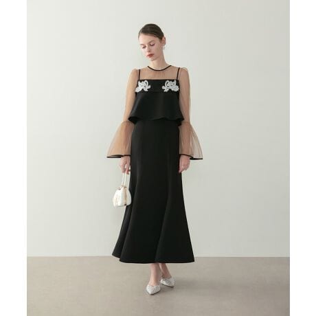 備考:立体フラワー刺繍 / シアーフレアスリーブ / マーメイドシルエット / セットアップ仕様