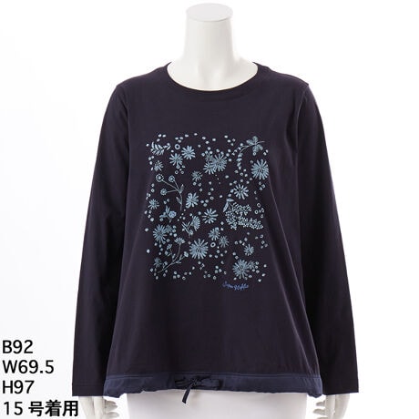 [15〜19号]フラワーシャワー発泡プリント 裾ドロストカットソー
