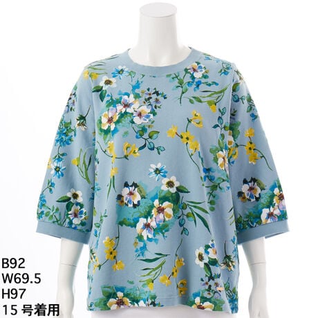 [15〜19号]フロラフロートプリント裏毛ドットドルマンスリーブスウェット