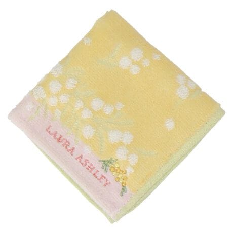 ボーダーのベースに無撚糸で3月8日国際女性デーの象徴の花「ミモザ」を表現したタオルハンカチ。