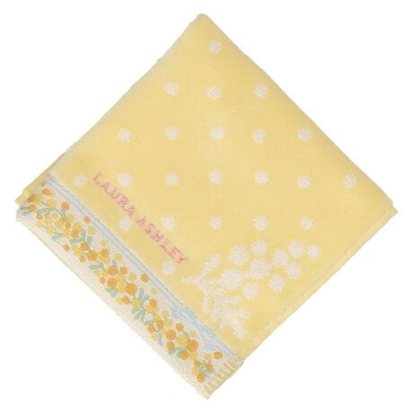 ドット柄をベースに3月8日国際女性デーの象徴の花「ミモザ」が可愛いタオルハンカチ。