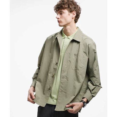 [型番:CH012J-99]マットな質感が際立つナイロンリップシャツジャケット・ミリタリーアイテムを彷彿とさせるマットな表情のナイロンリップ素材・あらゆるコーディネートに合わせやすいのレギュラーカラーデザイン・袖幅にゆとりを持たせたトレンドに寄り添うリラックスフィットシルエット・左胸にボディと同色のワニロゴパッチを配置Relax Fit