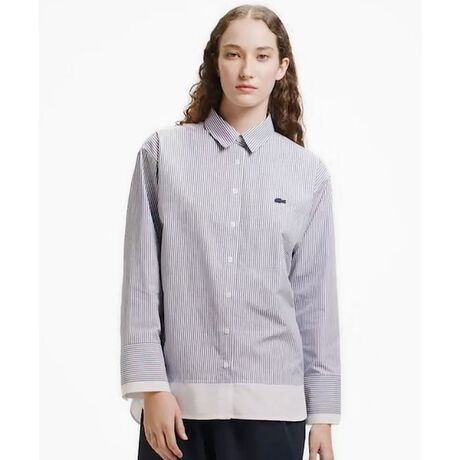 トラディショナルなパターンに裾と袖口の配色レイヤードが映えるデザインストライプシャツ