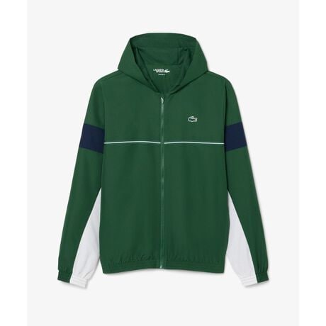 [型番:BH0210-99]スポーティーなカラーブロックデザインがラコステらしいトラックジャケット・環境保全に配慮したリサイクルポリエステル仕立てのダイヤモンドタフタ素材・アクティブシーンに役立つ撥水機能・通気性に優れたメッシュライニング・袖内をカットソーで切り替えたカラーブロックパネルデザイン・胸のラインにコントラストラインを配したテーピング・背面肩口にワニロゴプリントRegular Fit