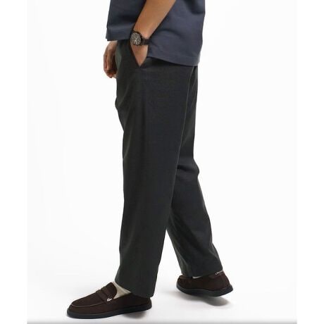 [型番:HH009J-99]ウールライクな表情をイージーケアで楽しめるバギーシルエットのイージーパンツ・ウールさながらの上質感を備えるポリエステル素材・ゆったりとしたバギーシルエットのリラックスフィット・フロントに同色のワニロゴパッチを配置Relax Fit