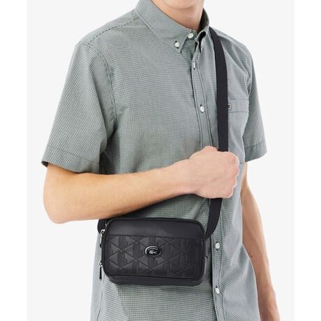 [型番:NH5264MR]同色のエンボスモノグラムにオーバルワニロゴプレートが映えるレポーターバッグ・同色モノグラムエンボスレザー×PUレザーのコンビ使用・フロントにヘリテージデザインのオーバル型エナメルプレート・使い勝手の良い2コンパートメントデザイン・内側にカードホルダーポケット付き