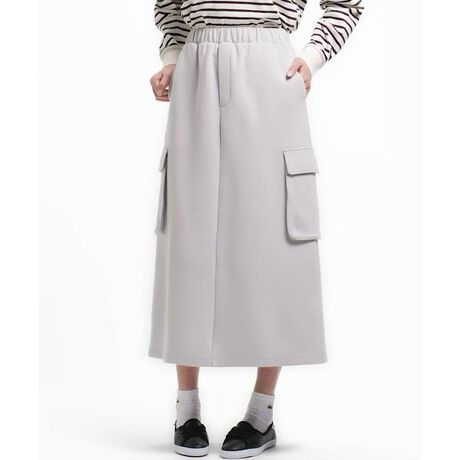 [型番:JF9462-99]クリーンな表情でカジュアルスタイルを格上げするダブルフェイスジャージカーゴスカート・滑らかな表面感が清潔感を演出するコットン×ポリエステルのダブルフェイスジャージ・カーゴパンツのディテールをマキシ丈スカートに取り入れたマニッシュデザイン・ワニロゴパッチのワンポイントに装飾を抑えたミニマルルックRegular Fit