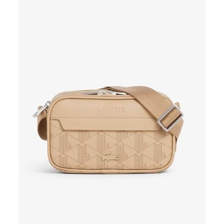[型番:NH5283LX]エレガントなモノグラム柄が映える、コンパクトなレポーターバッグ・グレインモノグラム柄を配したPVC素材・スクエアフォルムのミニマルなショルダーデザイン・外側に2つのジップコンパートメントを備えた実用設計・フロント上部にブランドネームロゴプリントをエンボス、下部にメタルワニロゴを配置