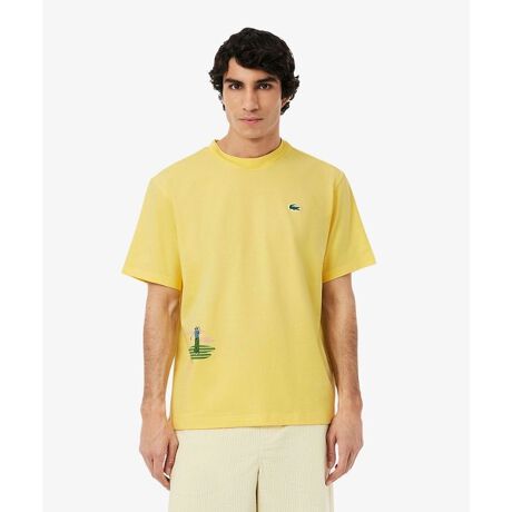 [型番:TH0126-10]ゴルフモチーフのポップなグラフィックが映えるバックプリントウルトラドライTシャツ・コットン×リサイクルポリエステルのウルトラドライシングルジャージー素材・タウンユースにも馴染むコットンライクなタッチ感・フロントの右脇にゴルフプレイヤーグラフィックをプリント・背面にゴルフモチーフのビッグプリント&ゴルフロゴを配置・左胸にシリコン製のワニロゴパッチClassic Fit