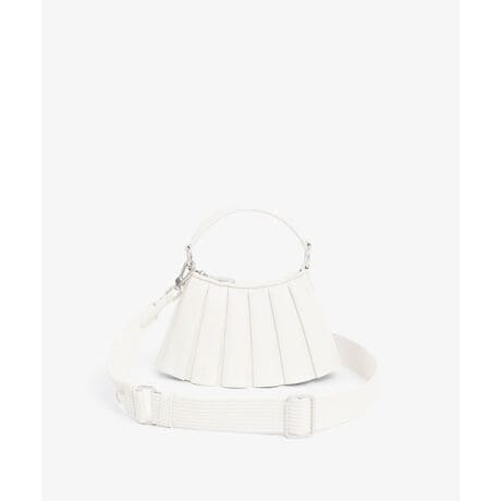 [型番:NU5219DP]テニスヘリテージをモダンに昇華したランウェイデザインのミニミニプリーツバッグ・エレガントな質感のプレミアムレザー・テニススカートのデザインに着想を得た立体プリーツ・XXSサイズながら収納性のあるジップ付きメインコンパートメント・着脱できるショルダーストラップ付き・内側にパッチポケットを装備・ボトムに同色の型押しワニロゴ・サイズ:幅27 x 高14 x 底マチ5cm