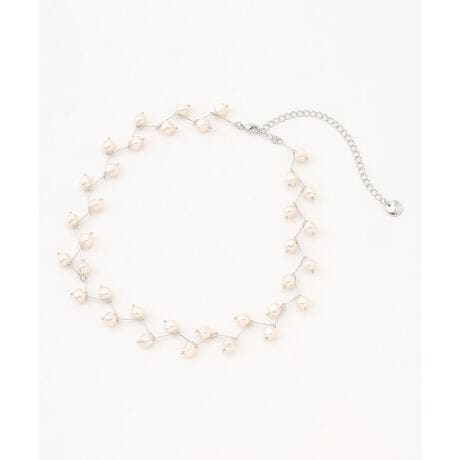 ■デザイン複雑に組み上げた繊細なチェーンに、パール一つ一つを丁寧に取り付けたショートネックレスです。首元に上品な華やぎをプラスします。セレモニーシーンやパーティーシーンはもちろん、普段使いもできるアイテムです。