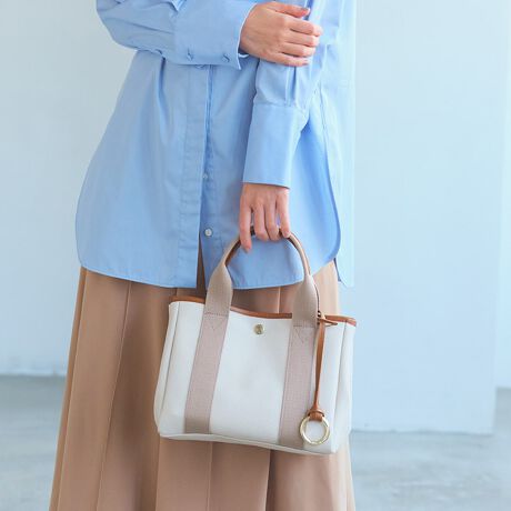 カラビナ仕様のリングチャームは飾りとしてだけでなく、鍵やパスケースを付けられる実用性も魅力。取り外し可能なので他のバッグに付け替えてアレンジも楽しめます。