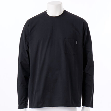 天然繊維のような柔らかさとともに、汗処理機能と肌離れのよさを備えた、現代の酷暑に対応する長袖Tシャツ/特徴・汗を素早く吸水・発散し、肌をドライに保つ吸汗速乾素材・FLASHDRYを採用・接触冷感機能により、夏でも快適な着心地/生地・素材・速乾性に優れたポリエステル素材・ストレッチ性のある生地で上半身の動きに追従/機能・デザイン・インナーとしても単体でも着用しやすい、シンプルなデザイン・襟はフライス素材でカジュアルな印象・左胸にポケット・左胸ポケットにピスネーム/おすすめシーン・ライフスタイル、アウトドア