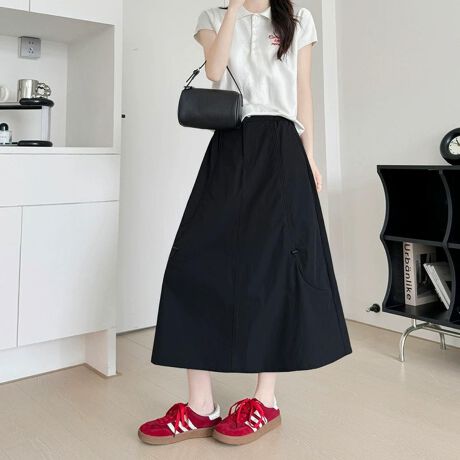 軽やかに動けてちょうどいいドローストリングポケットスカート