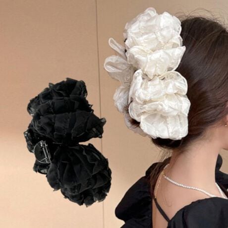 軽やかなシフォン素材をたっぷり重ねた、存在感のあるヘアアクセサリーの2点セット。