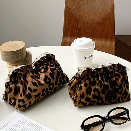 やわらかな素材を使用した、レオパード柄が目を引くポーチです。