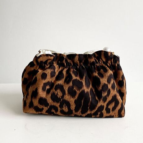 やわらかな素材を使用した、レオパード柄が目を引くポーチです。