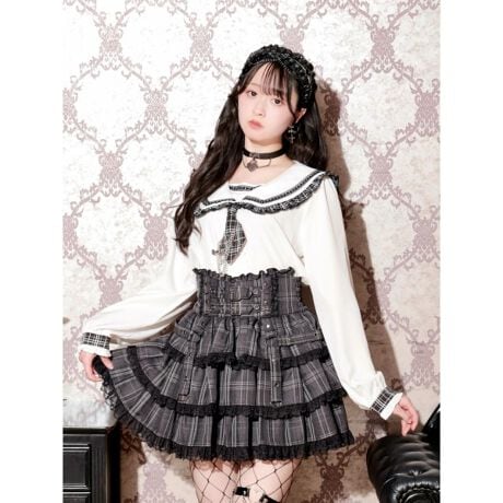 セーラーカラーにフリルをあしらった存在感のあるブラウス。