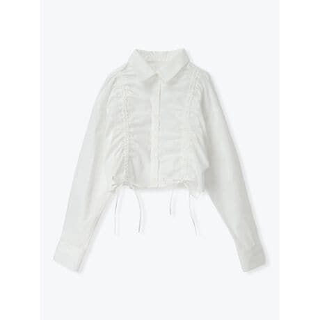 [型番:26560778665]ドロストを絞ることで印象の変化を楽しめるシャツ。カラーによってデザインの異なる柄をあしらい、様々な雰囲気を演出します。短めのクロップド丈がウエストラインをすっきり魅せるのもポイント。デニムやスラックスと合わせたラフなコーディネートがおすすめです。