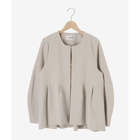 シャープな印象のノーカラーデザインに、フェミニンなペプラムシルエットを組み合わせた一枚。