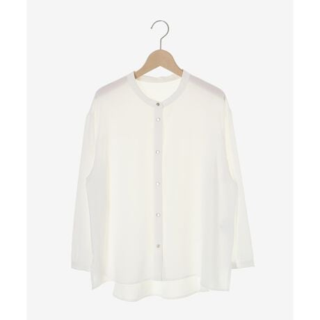 シンプルなシャツデザインですが、ゆったりとしたシルエットと落ち感のある素材で、カッチリせず柔らかい印象で着て頂けます。