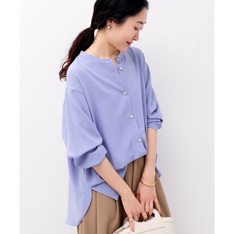 シンプルなシャツデザインですが、ゆったりとしたシルエットと落ち感のある素材で、カッチリせず柔らかい印象で着て頂けます。