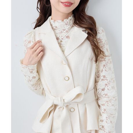 繊細な起毛レース素材を使用した、上品な印象の長袖トップス。