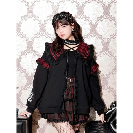 チェック柄のセーラーカラーが印象的な、甘さとダーク感を掛け合わせたブルゾン。