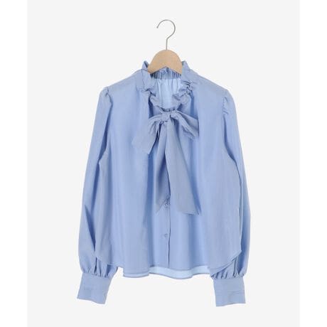 長めのボウタイは軽く結んで垂らせば、ラフで上品な大人ムードにフィブリルサテンはキュプラのような繊細なフィブリル感、割繊糸ならではのピーチタッチが特徴の微起毛素材で、シワになりにくく、自宅で手洗い可能なイージーケアが嬉しいポイントです。