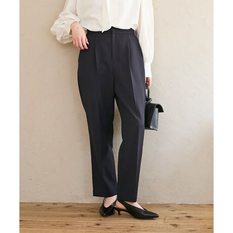 きれい見えと快適さを両立する、ツインクロス生地のテーパードパンツ。